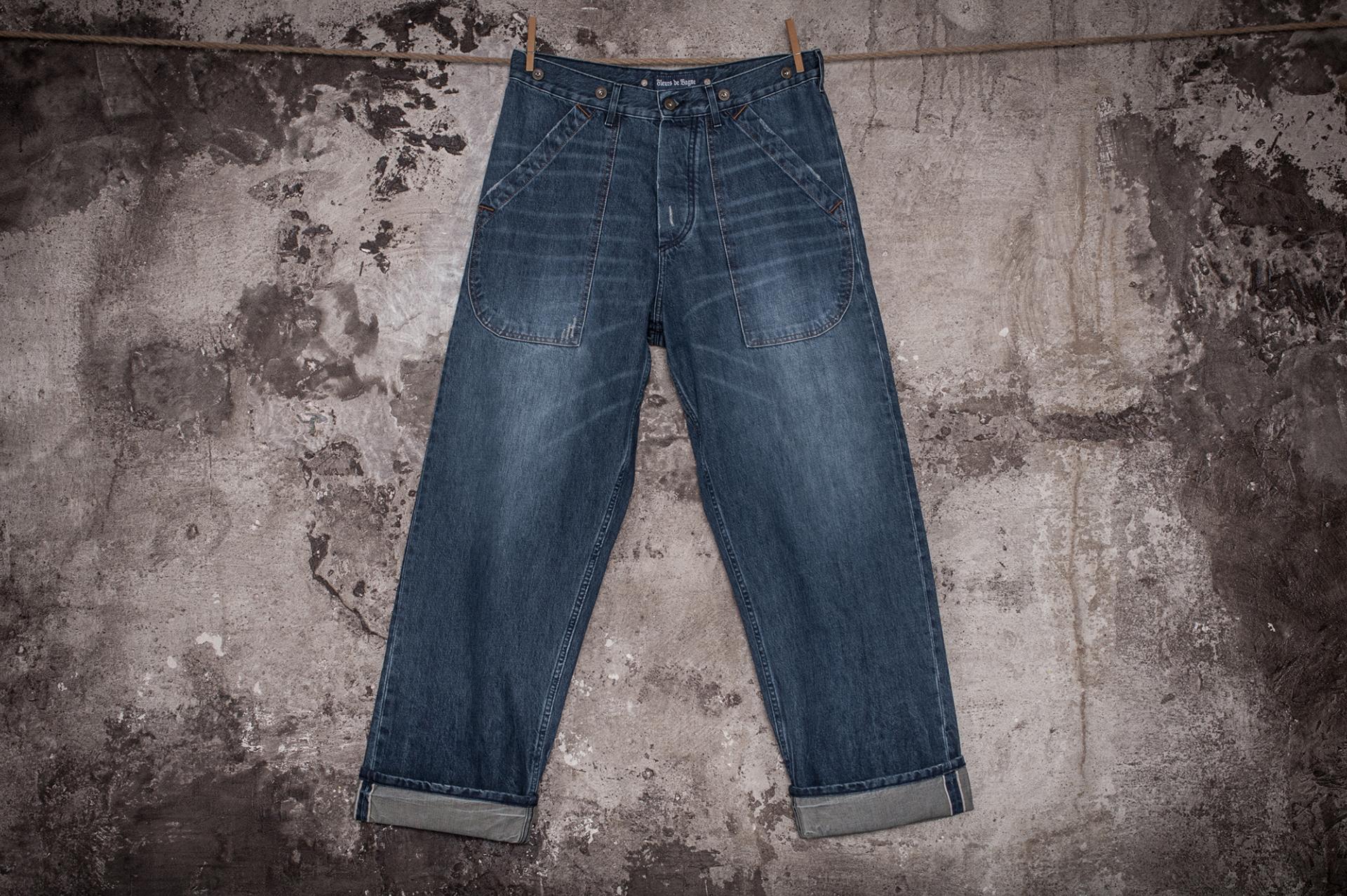 Coupe inspirée des pantalons de travail des années 40 (taille haute/coupe large) .
